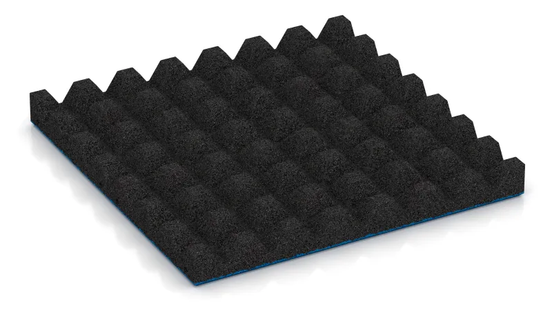 Porézní povrch z EPDM je protiskluzový, odolný vůči UV záření i opotřebení – i na mokré ploše. Díky příjemné struktuře je ideální pro místa s přímým kontaktem s pokožkou. Spodní strana je tvarována do formy obrácených komolých pyramid, které tlumí nárazy a odvádějí vodu. Díky tomu se na ploše netvoří kaluže a dlaždice rychle osychají.