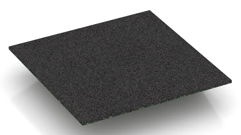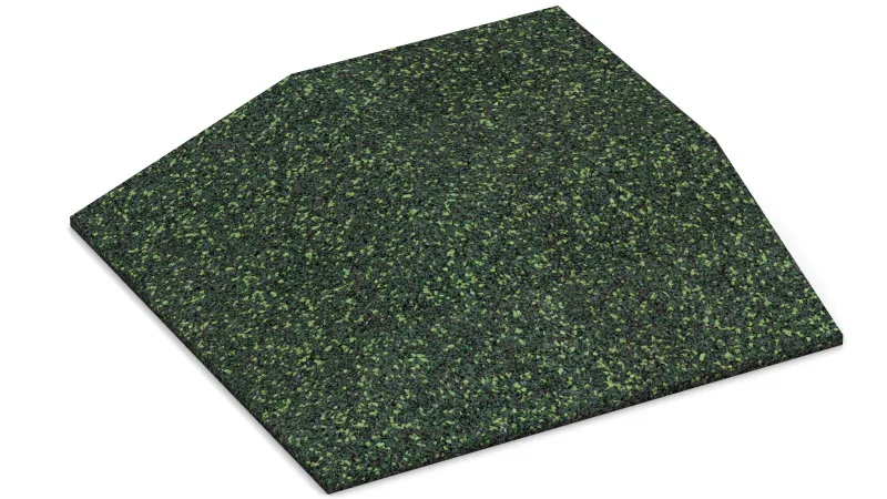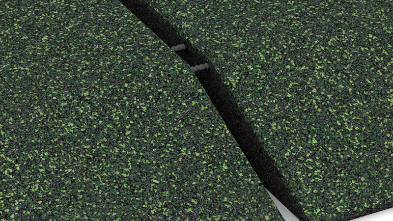 The corner tile with two chamfered sides arranged perpendicularly to each other is a useful and system-compatible addition to the rubber granulate tiles type FS. The corner tile is used between two perpendicularly situated edge tiles FI to build a corner without any trip hazard. Edge tiles and corner tiles are used if only a section of the ground should be covered with rubber granulate plates. Usage of the corner tile helps smoothly compensate the level difference between the ground and the rubber slabs surface. That's how the danger of accident can be reduced.
