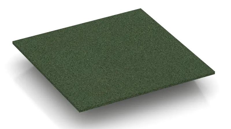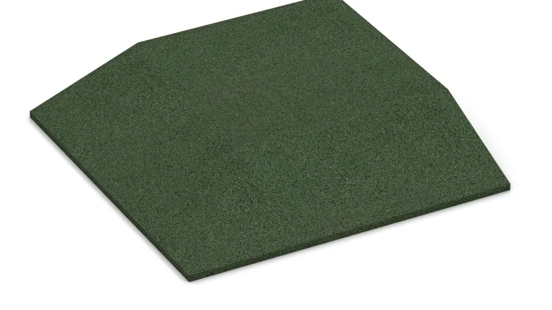 The corner tile with two chamfered sides arranged perpendicularly to each other is a useful and system-compatible addition to the rubber granulate tiles type FS. The corner tile is used between two perpendicularly situated edge tiles FI to build a corner without any trip hazard. Edge tiles and corner tiles are used if only a section of the ground should be covered with rubber granulate plates. Usage of the corner tile helps smoothly compensate the level difference between the ground and the rubber slabs surface. That's how the danger of accident can be reduced.