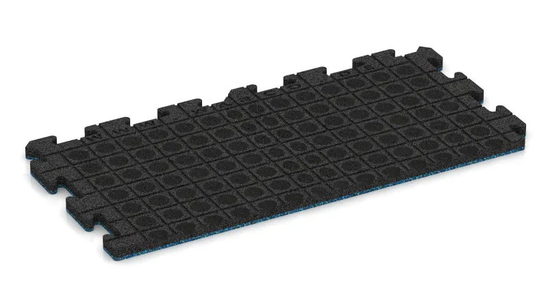 Okrajová dlaždice HD poskytuje přesné a odolné zakončení podél vnějších hran povrchů vyložených dlaždicemi s vysokou hustotou. Každý prvek představuje polovinu celé puzzle dlaždice: vnitřní strana je vybavena známým puzzle zámkem a dokonale zapadá do ostatních dlaždic, zatímco vnější strana tvoří hladký, rovný ukončovací okraj. Tím získává celá plocha funkční a vizuálně jednotný rám.