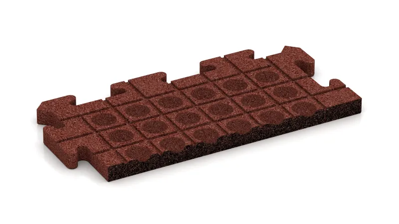 Okrajová dlaždice HD poskytuje přesné a odolné zakončení podél vnějších hran povrchů vyložených dlaždicemi s vysokou hustotou. Každý prvek představuje polovinu celé puzzle dlaždice: vnitřní strana je vybavena známým puzzle zámkem a dokonale zapadá do ostatních dlaždic, zatímco vnější strana tvoří hladký, rovný ukončovací okraj. Tím získává celá plocha funkční a vizuálně jednotný rám.