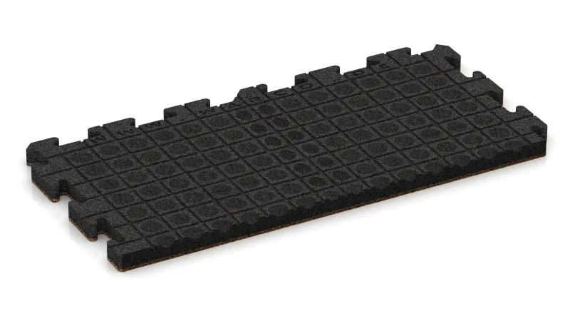 Okrajová dlaždice HD poskytuje přesné a odolné zakončení podél vnějších hran povrchů vyložených dlaždicemi s vysokou hustotou. Každý prvek představuje polovinu celé puzzle dlaždice: vnitřní strana je vybavena známým puzzle zámkem a dokonale zapadá do ostatních dlaždic, zatímco vnější strana tvoří hladký, rovný ukončovací okraj. Tím získává celá plocha funkční a vizuálně jednotný rám.