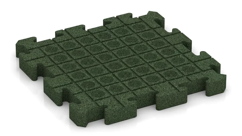 The slightly elastic paving slabs provide a special safety and a running comfort similar to that given by the forest soil. The slabs are extensively water-permeable, quick-drying and they don't seal the ground below. They are slip-resistant, provide fall protection and don't let the noise caused by hard footwear, trolley bags or skateboards even arise.