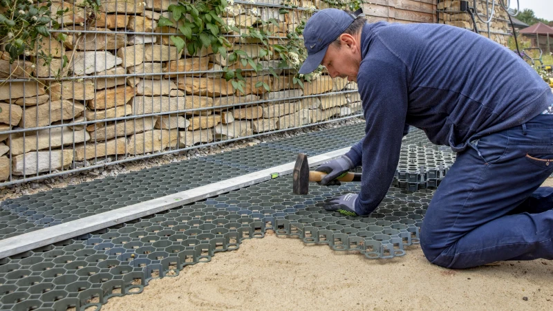 In many cases, this does not even require major earthmoving. This is because when using plastic honeycomb grids as a base layer, excavation to a depth of 10 to 20 cm is often sufficient.