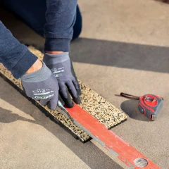 The pitch must have good vertical or horizontal drainage. This is because the rubber granulate slabs should not lie in water for long periods of time. If puddles form on the future basketball court in rainy weather, these must be filled with a suitable material before the WARCO tiles are laid. Sand or gravel are unsuitable; the material floats away. In the event of minor unevenness, it is sufficient to lay sheets of roofing felt on top.