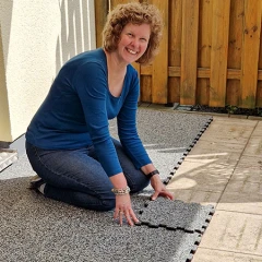 WARCO desky jsou složeny z přibližně 90 % gumového granulátu a 10 % polyuretánového pojiva. Tento materiál je obzvlášť odolný a mrazuvzdorný, a proto je ideální pro balkony a terasy. Další výhodou je jednoduchá pokládka, protože se desky jednoduše pokládají – není nutné je šroubovat ani lepit.