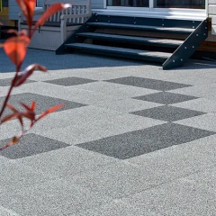 Terasové dlaždice z gumy Warco tlumí zvuk kroků a vibrace. Izolují před chladem z podkladu a nezahřívají se.