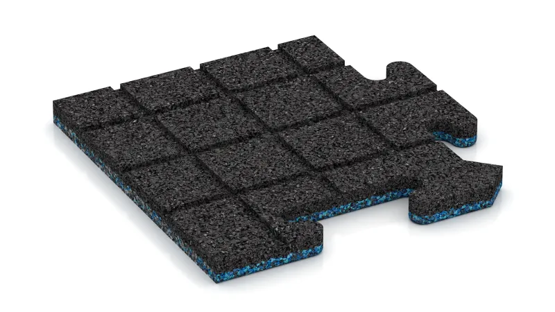 Rohová dlaždice zaručuje přesné a rovné zakončení v každém ze čtyř rohů plochy pokryté dlaždicemi. Každý prvek představuje čtvrtinu celé puzzle dlaždice: vnitřní strany mají dobře známý puzzle zámek a dokonale zapadají do ostatních dlaždic, zatímco vnější strany jsou hladké a rovné. Tím vzniká harmonický a funkční rám po celém obvodu plochy.