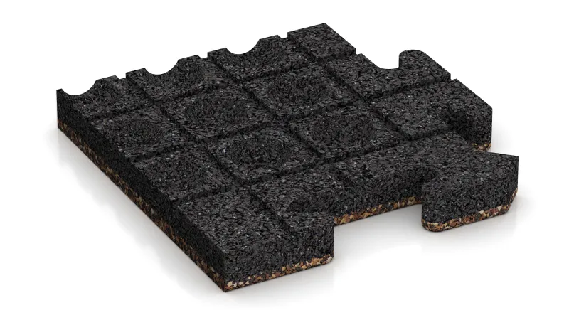 Rohová dlaždice zaručuje přesné a rovné zakončení v každém ze čtyř rohů plochy pokryté dlaždicemi. Každý prvek představuje čtvrtinu celé puzzle dlaždice: vnitřní strany mají dobře známý puzzle zámek a dokonale zapadají do ostatních dlaždic, zatímco vnější strany jsou hladké a rovné. Tím vzniká harmonický a funkční rám po celém obvodu plochy.