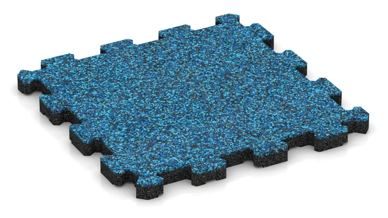 Dlaždice je vyrobena z gumového granulátu spojeného polyuretanem. Velké bloky se lisují, nechají odpočinout a následně se přesně řežou. Takto vznikají kalibrované dlaždice s přesnými rozměry a jednotným povrchem – což usnadňuje pokládku a zajišťuje kvalitní vzhled.
