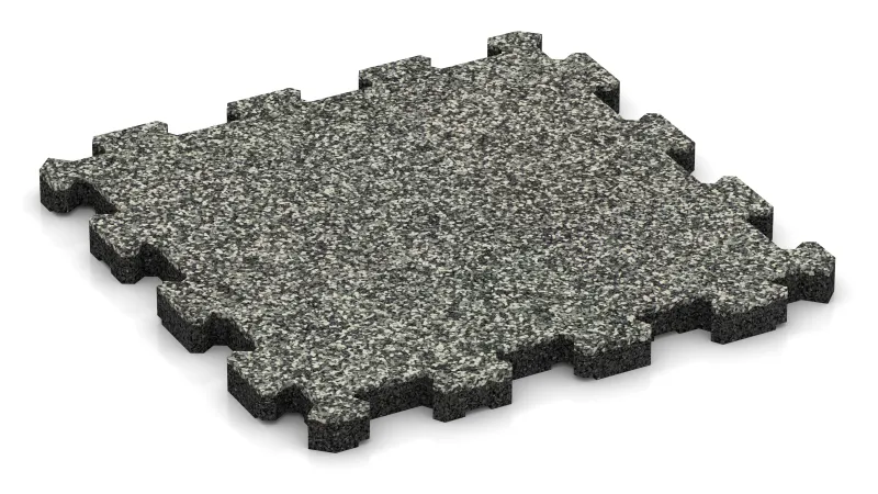 Dlaždice je vyrobena z gumového granulátu spojeného polyuretanem. Velké bloky se lisují, nechají odpočinout a následně se přesně řežou. Takto vznikají kalibrované dlaždice s přesnými rozměry a jednotným povrchem – což usnadňuje pokládku a zajišťuje kvalitní vzhled.