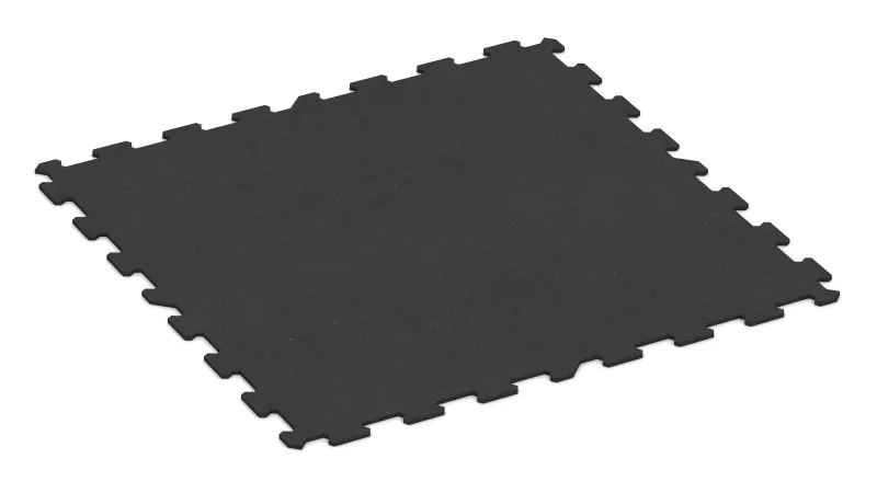 Dlaždice je vyrobena z gumového granulátu spojeného polyuretanem. Velké bloky se lisují, nechají odpočinout a následně se přesně řežou. Takto vznikají kalibrované dlaždice s přesnými rozměry a jednotným povrchem – což usnadňuje pokládku a zajišťuje kvalitní vzhled.
