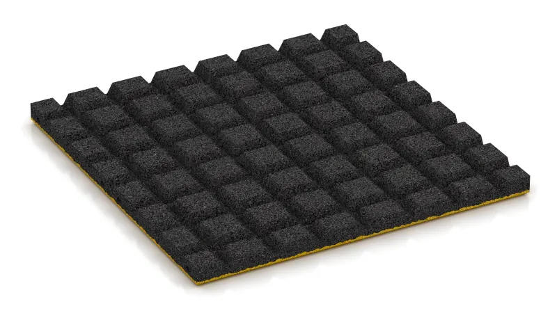 Komfort & bezpečnost. Povrch je protiskluzový a poskytuje jistý krok za sucha i za mokra. Elastická struktura účinně tlumí kročejový hluk a nárazy, což zajišťuje pohodlnou a kloubům šetrnou chůzi. Ve srovnání s kamenem nebo keramikou je chůze po těchto dlaždicích příjemnější, a to i naboso.