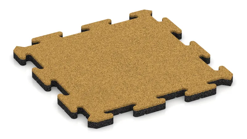 Obvodový puzzle zámek. Dlaždice jsou vybaveny obvodovým, tvarovaným puzzle zámkem s lehkou fasetou. Při plovoucí pokládce do sebe zuby přesně zapadají a vytvářejí stabilní a rozměrově stálou plochu. Řezání okrajových dílů je snadné pomocí přímočaré nebo kotoučové pily.